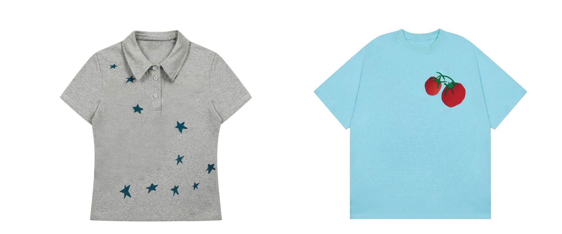 Star Print Polo Gray T-Shirt